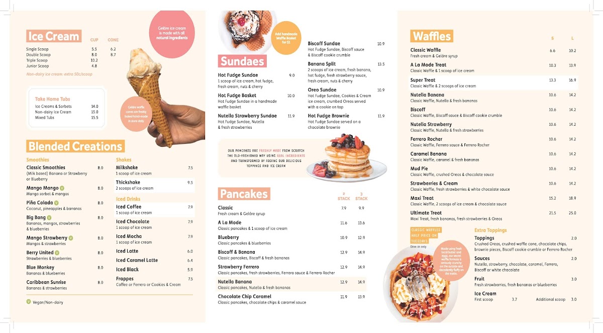 From a reviewer’s perspective, the menu at Geláre Ellenbrook offers a playful and indulgent selection centered around its signature Ice Cream, with options that let customers mix and match their scoops to suit their craving: classic single serves like Single scoop - cup and Single scoop - cone, the more generous Double scoop - cup and Double scoop - cone, and for those looking for even more, a Triple scoop - cup option. Each choice reflects the café’s focus on simple yet satisfying treats, making it easy for guests to enjoy their favorite flavours in the format they prefer.